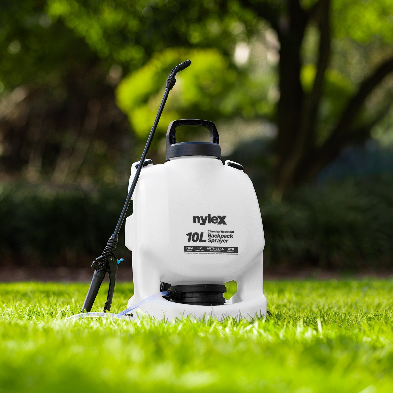 With fluoroelastomer seals and a UV-stabilised tank, the sprayer stands up to both harsh chemicals and outdoor conditions. It’s designed for lasting performance with a wide range of water- and solvent-based solutions.
