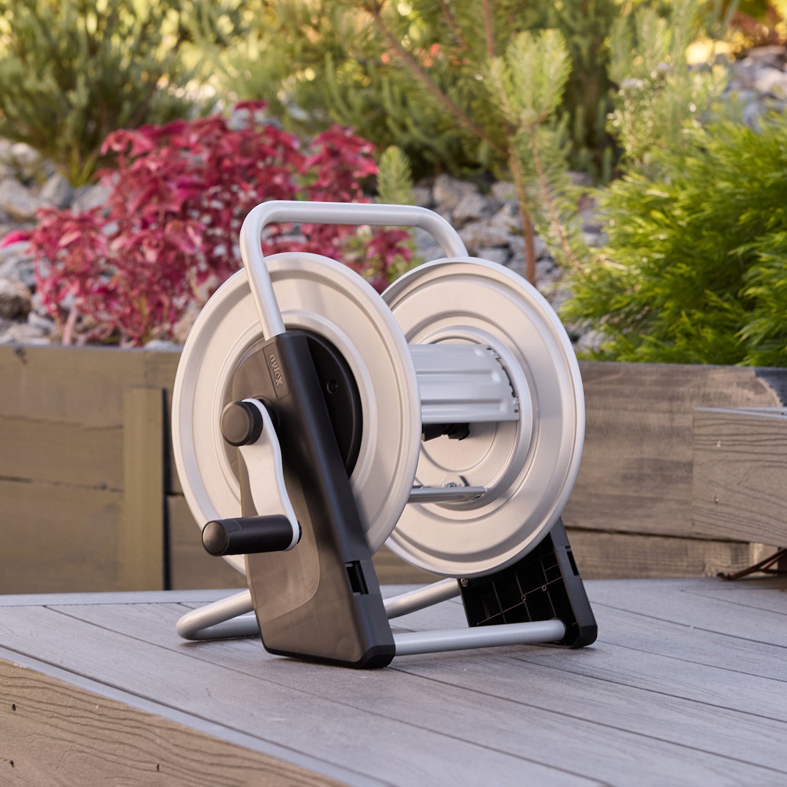 The Nylex Metal Hose Reel combines durable steel construction with a sleek, modern design that looks great in any garden. Its compact size keeps your hose neatly stored without taking up space, while the lightweight build and ergonomic handle make it easy to move wherever you need. Strong, portable, and stylish. It's a practical storage solution that doesn’t compromise on appearance.