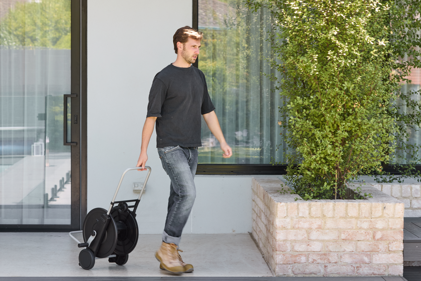Holding up to 50m of hose, the telescopic handle retracts neatly for easy storage in tight spaces. A built-in hose guide keeps winding smooth and tangle-free, so everything packs away clean and compact.