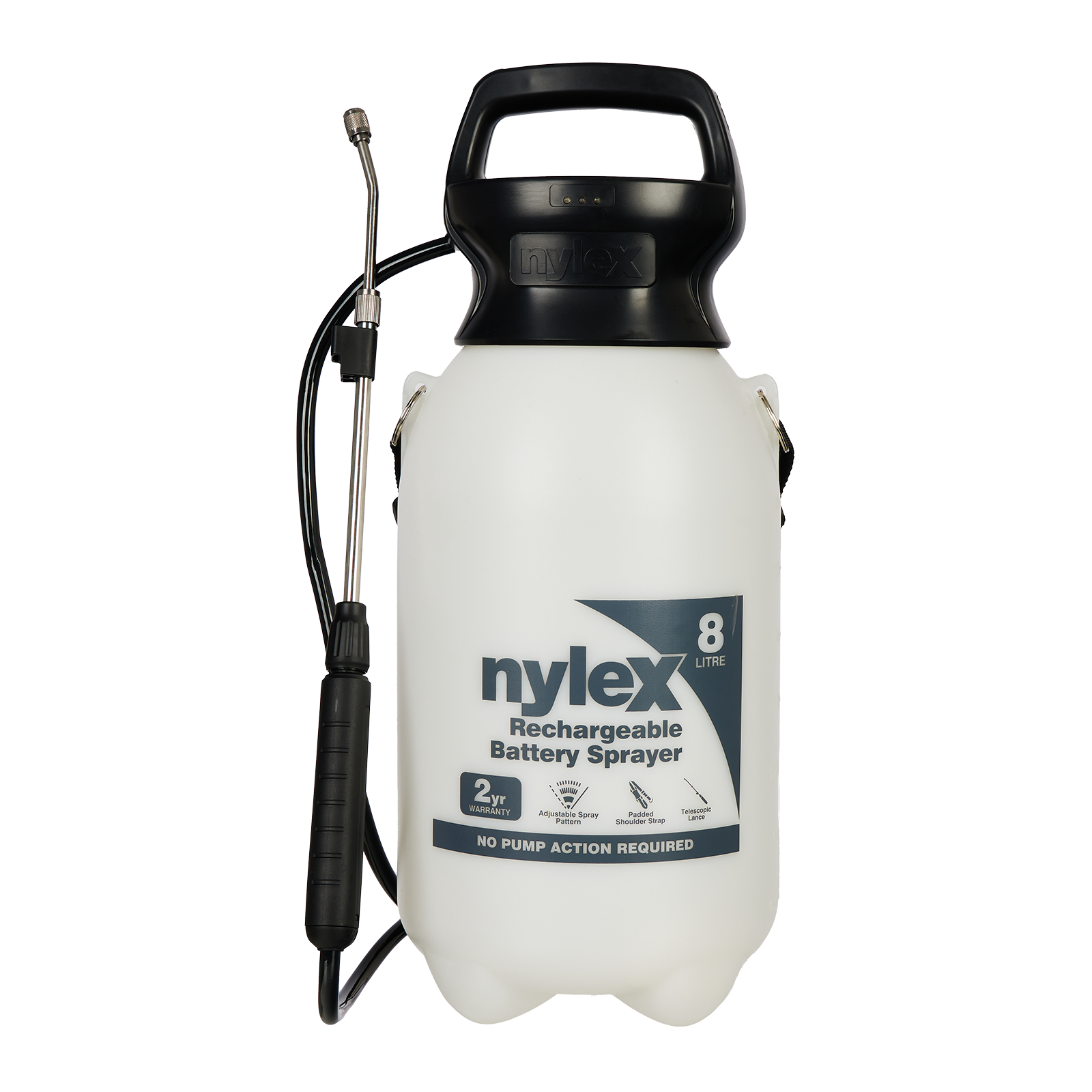 The Nylex 8-litre Rechargeable Shoulder Sprayer, powered by a built-in rechargeable 12V Lithium-Ion battery will make light work of the biggest garden spraying tasks.